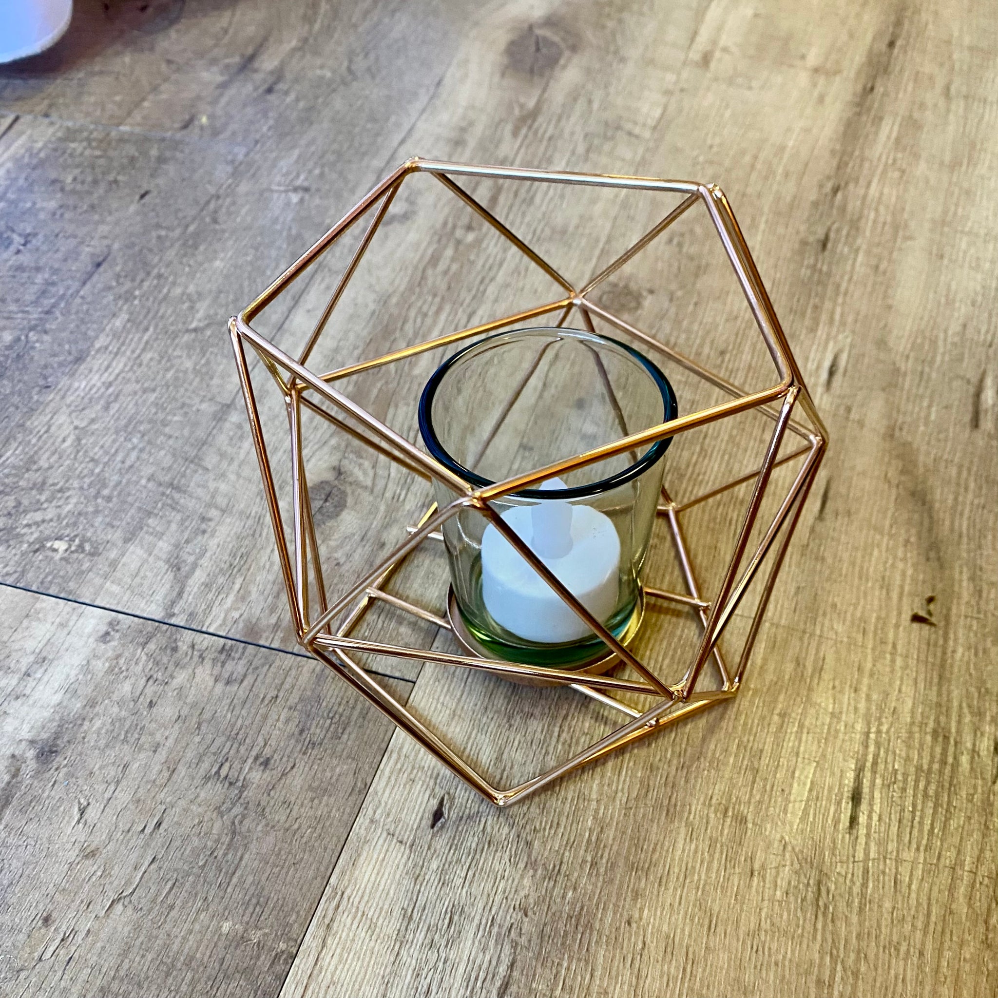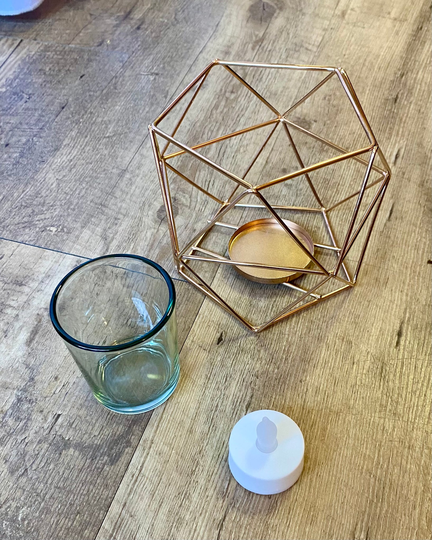 Set is 4, includes votive cup & battery operated candle. Approximately 5” x 5” x 4” tall