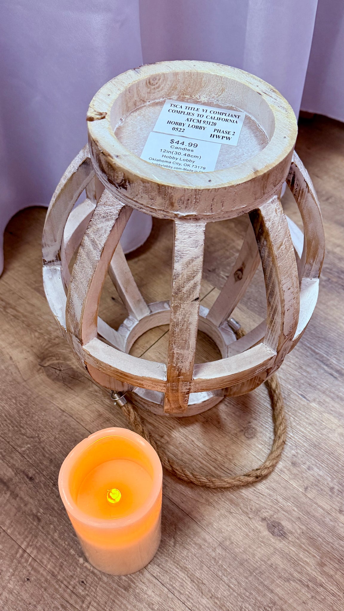 LEGO200-B Whitewash Lantern + Battery Operated Pillar Candle
