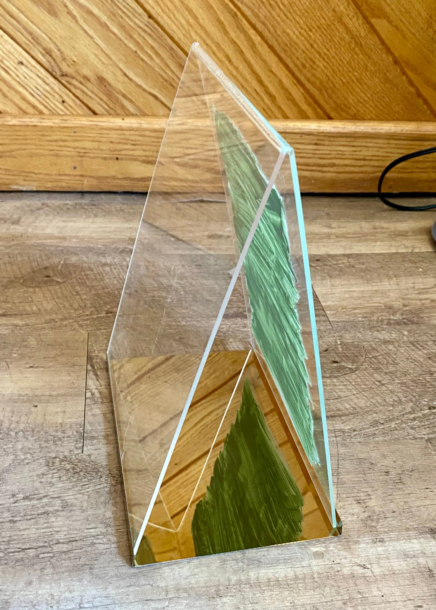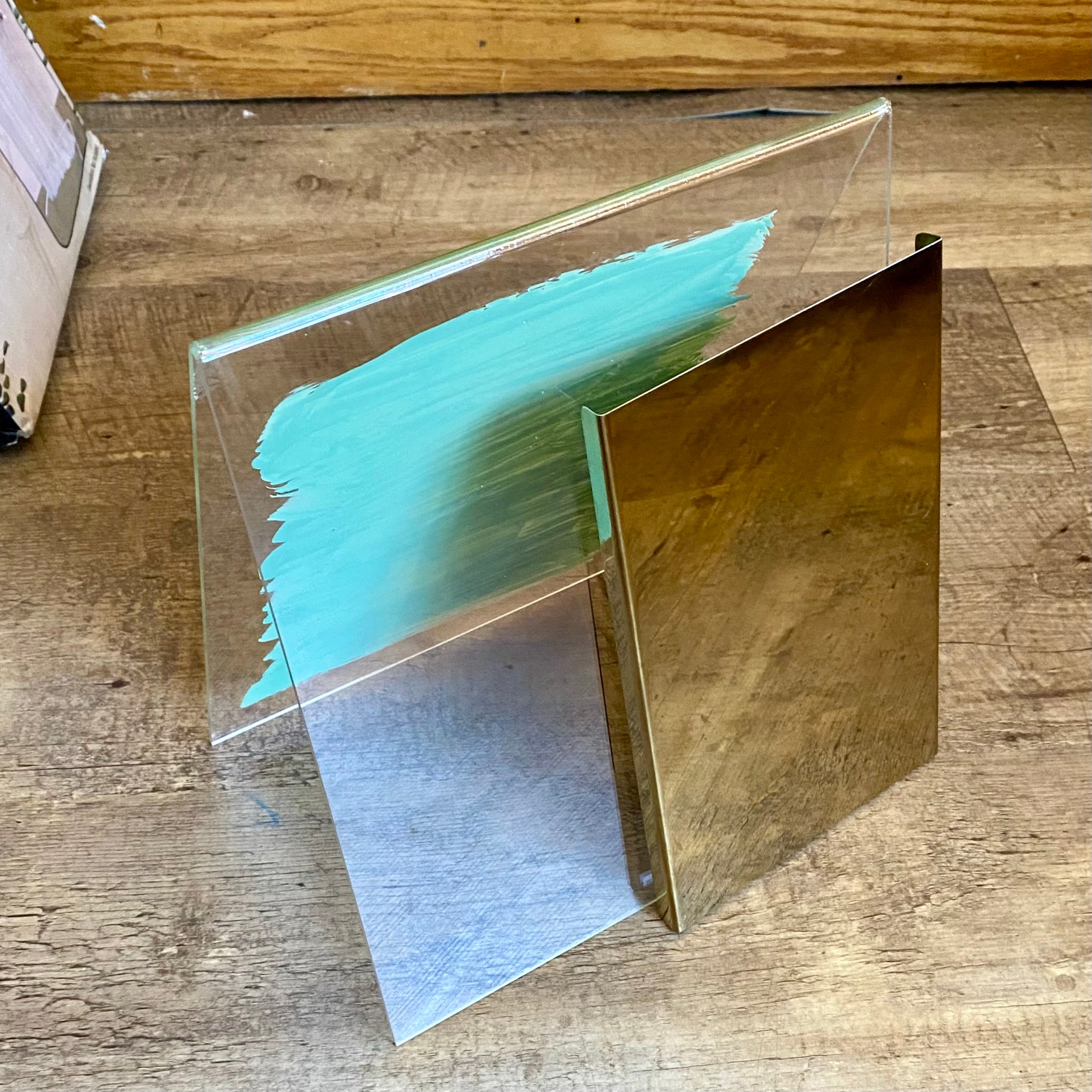 8” x 10” Freestanding, clear acrylic & gold sign. Hand painted sage green with white lettering