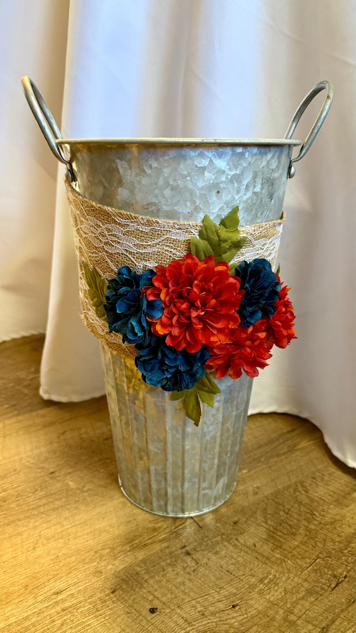 Navy blue & terracotta floral shades on lace burlap wrap. Can be cut off