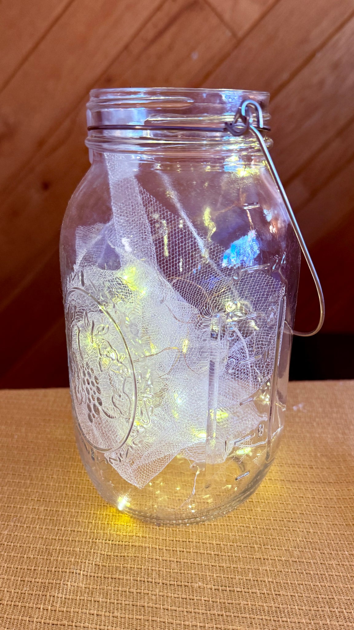 Set of 10 quart size with silver hangers. Tulle piece included, fairy light not included